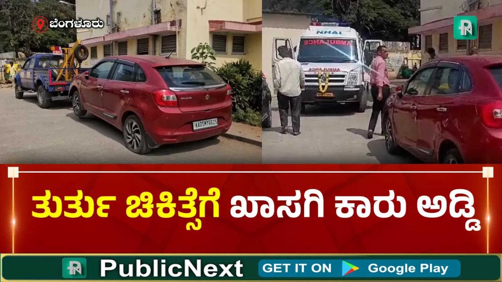 ತುರ್ತು ಚಿಕಿತ್ಸೆಗೆ ಖಾಸಗಿ ಕಾರು ಅಡ್ಡಿ : ಆಂಬ್ಯುಲೆನ್ಸ್ ನಲ್ಲಿ ಗಾಯಾಳು ನರಳಾಟ