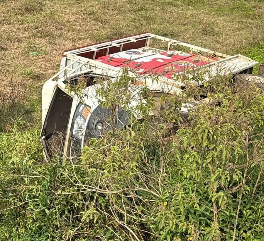 Ice cream truck overturns in Mudigere - Driver narrowly escapes