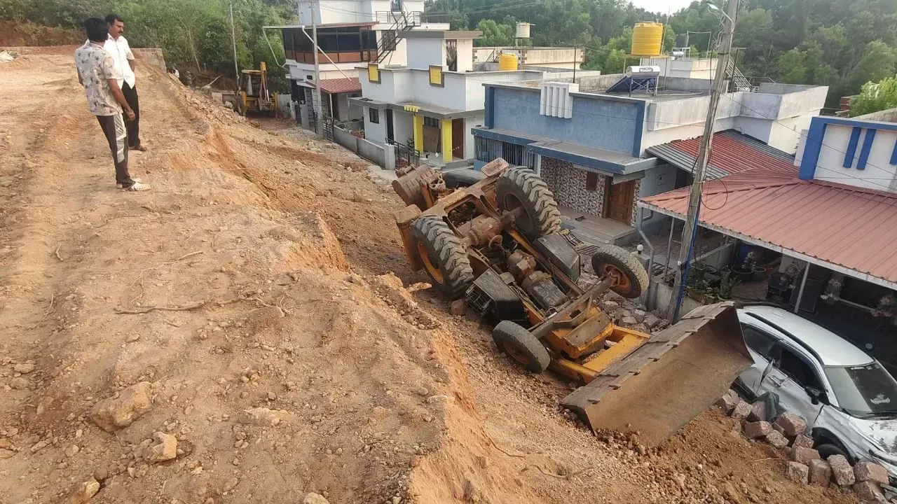 ಉಳ್ಳಾಲ: ಕುಂಪಲದಲ್ಲಿ ನಿರ್ಮಾಣ ಹಂತದ ಲೇಔಟ್ನ ತಡೆಗೋಡೆ ಕುಸಿದು ಉರುಳಿಬಿದ್ದ ಜೆಸಿಬಿ