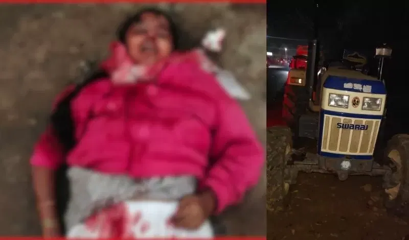 Shivamogga: Woman dies on the spot after tractor-bike collides with her husband, child injured
