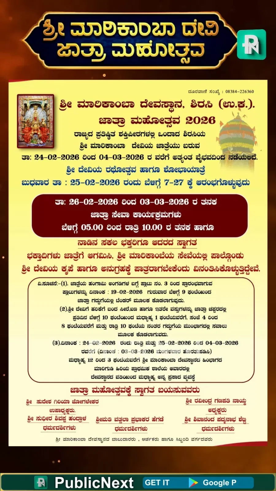 Sri Marikamba Temple, Sirsi (U.K.).Jatra Mahotsav 2026,