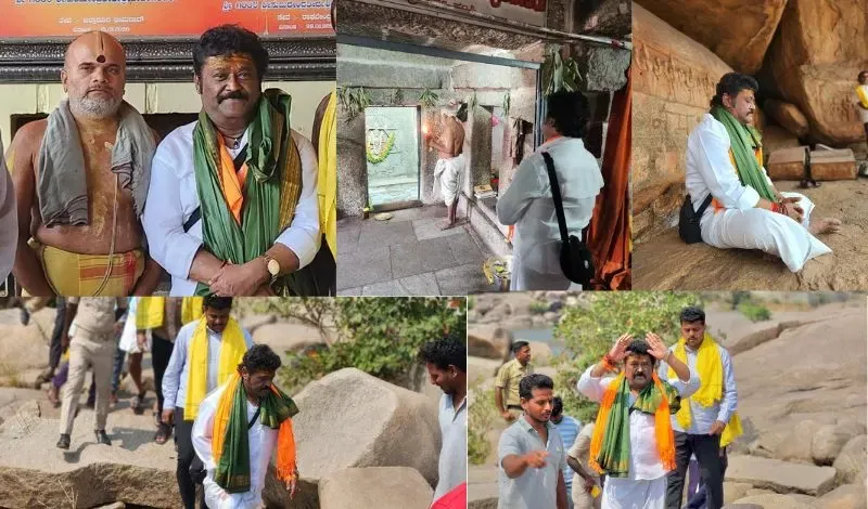 Hospet: Jaggesh visited the Machine Rescue Temple in Hampi and offered prayers